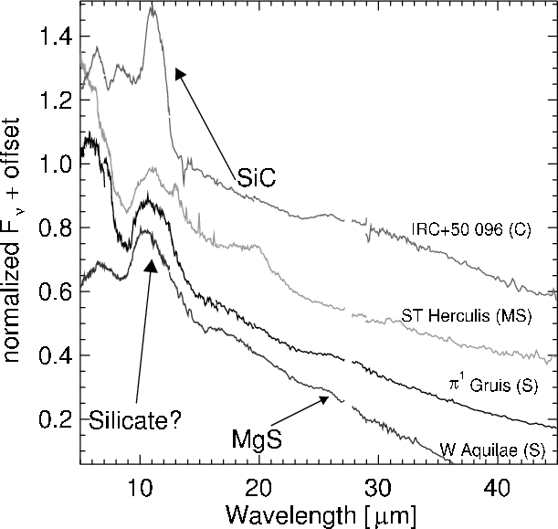 - Little-Marenin & Little (1988) find that S-type stars preferentially exhibit a broad feature peaking in the 10.5-10.8