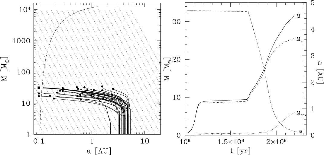 planets takes several days on a 50 CPU cluster. Most of the time is spent in solving the planetary envelope structure equations.