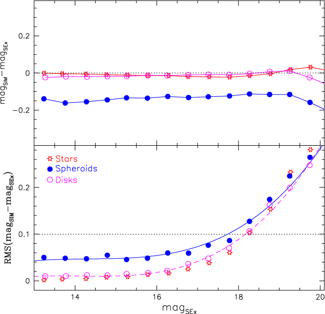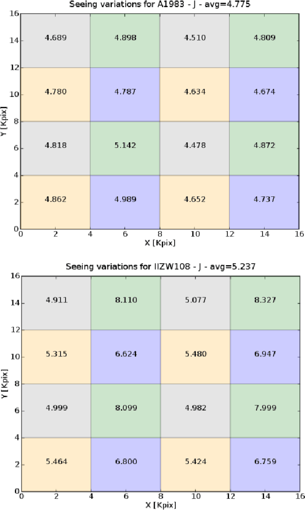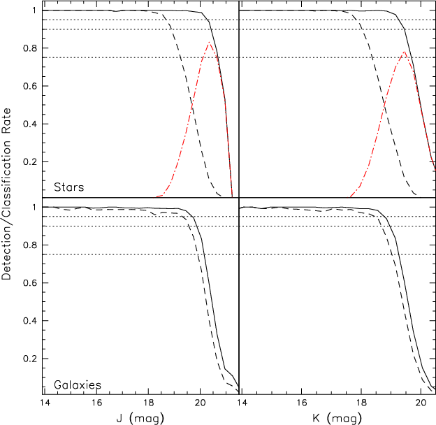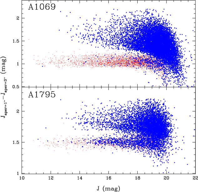 - In Paper II the galaxies value was 0.2: the difference is due to the intrinsic differences between near-infrared and optical images. These values are estimated using simulations which reproduce the peculiar characteristics of the mosaics.