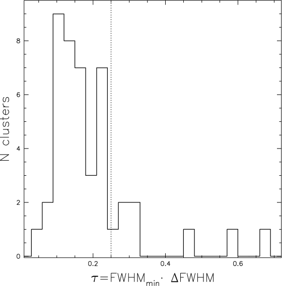subsample of 51 clusters, obtained with the spectrographs WYFFOS@WHT