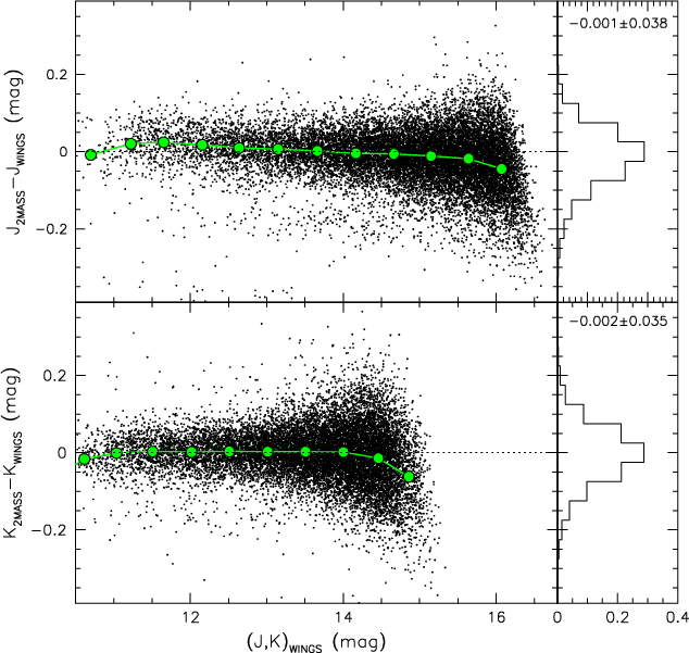 WINGS-NIR is by far the largest survey of nearby galaxy clusters as far as the area coverage is concerned. In fact, in this redshift range, only individual clusters or small cluster samples have been studied in the literature up to now (e.g., De Propris et al. 2003; Gavazzi et al. 1990; Pahre 1999). The WINGS survey of near-infrared data consists of nearly one million detected sources, with 150 000 and 500 000 well classified stars and galaxies, respectively.