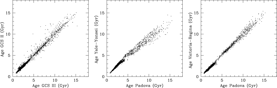 Middle: GCS III ages (Padova isochrones) vs. ages from