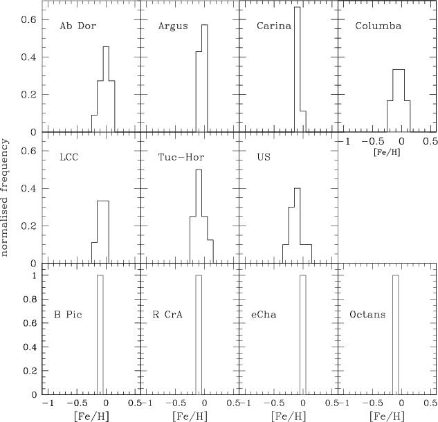 Chamaeleon (Barrado y Navascués 1998; Mamajek et al. 2000; Torres et al. 2008), R Coronae Australis association (R CrA) (Neuhäuser et al. 2000), Lower Centaurus-Crux (LCC), Octans (Torres et al. 2008), Tucana-Horologium (Tuc-Hor) (Zuckermann
