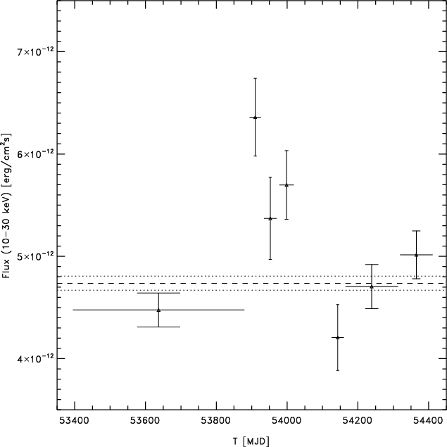 1.2. Unfortunately, INTEGRAL did not observe PSR J1846-0258 when the glitch triggered the outburst. Nevertheless, INTEGRAL observations during the tail of the outburst covered also PCA observation-time window B (Table 3 and see overlap in Fig. 7), but the statistics were insufficient for extracting the pulsed signal. They revealed, however, an increase of the total flux (20-100 keV) with (