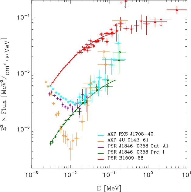 Key words: pulsars: individual: PSR J1846-0258 - pulsars: individual: PSR B1509-58 - pulsars: individual: 4U 0142+61 - pulsars: individual: 1RXS J170849-400910 - X-rays: general - gamma rays: observations