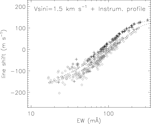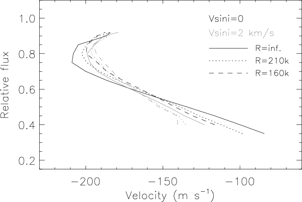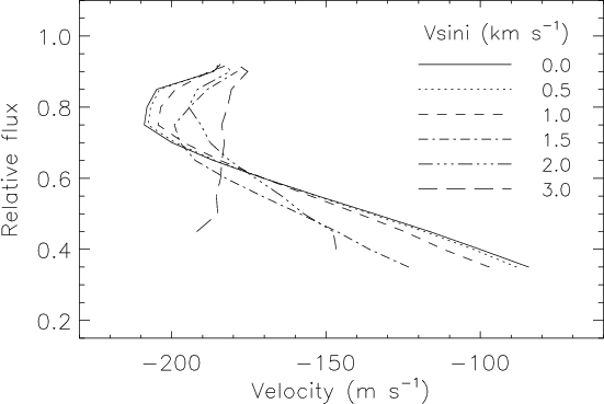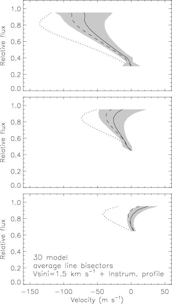 By convolving line profiles predicted by our 3D model with projected rotational velocity and instrumental profiles, as described in Sect. 4, we determined a more accurate
