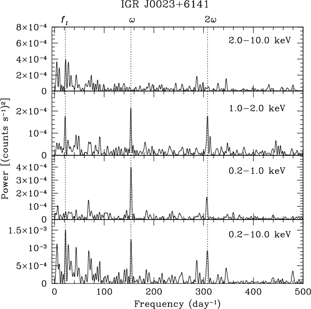 0.56 s for the white dwarf in IGR J00234+6141. The X-ray pulses are observed up to
