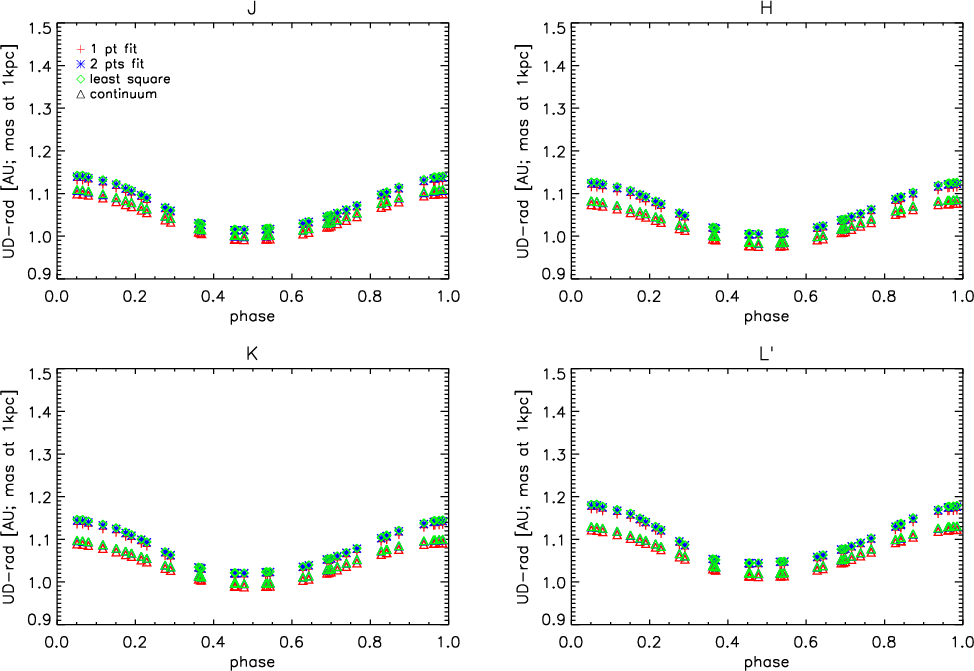 - The trend of the UD-radii versus phase in broad-band is smoother than in the case of the narrow-band filters.