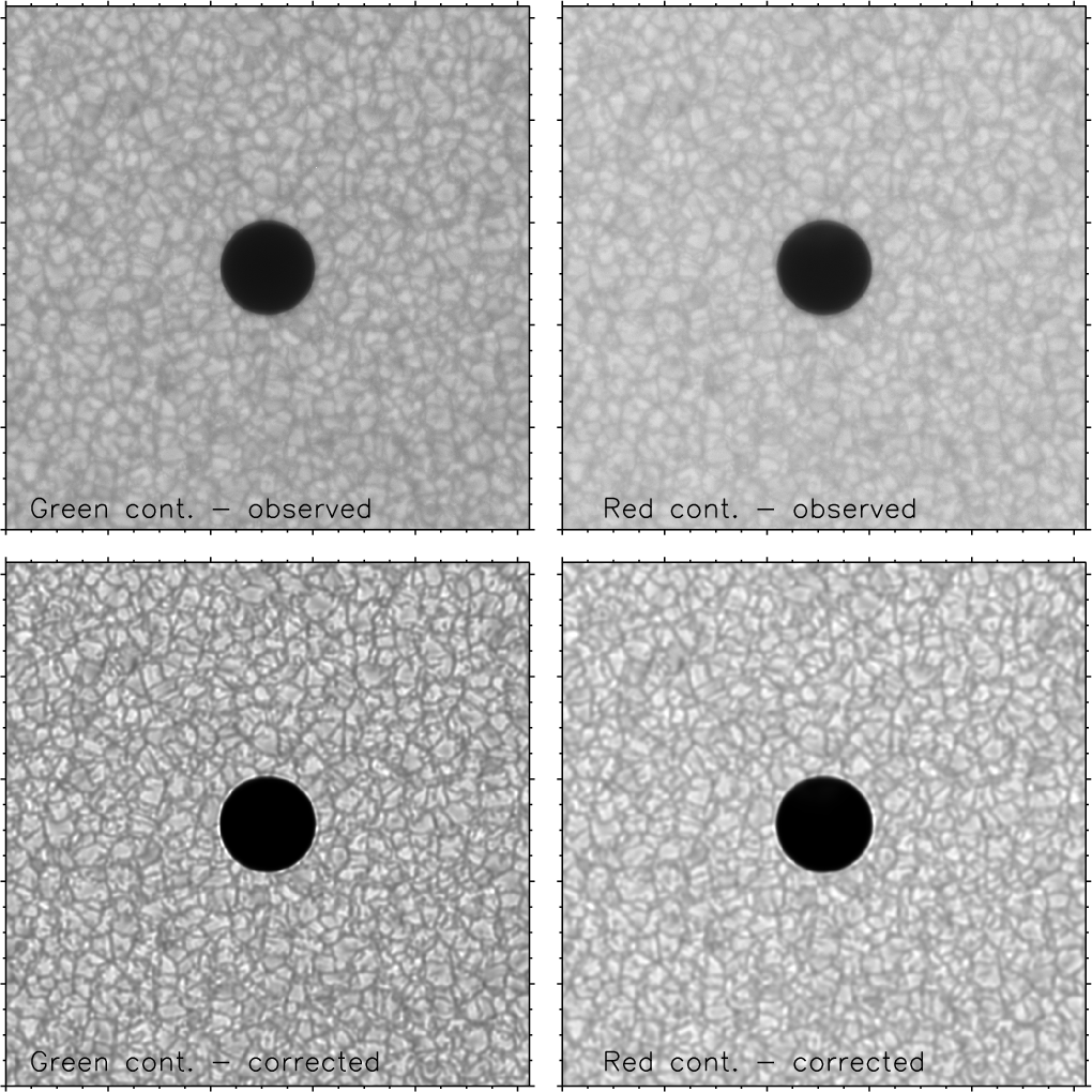 such as bright points and granulation in different wavelength bands. After correction,