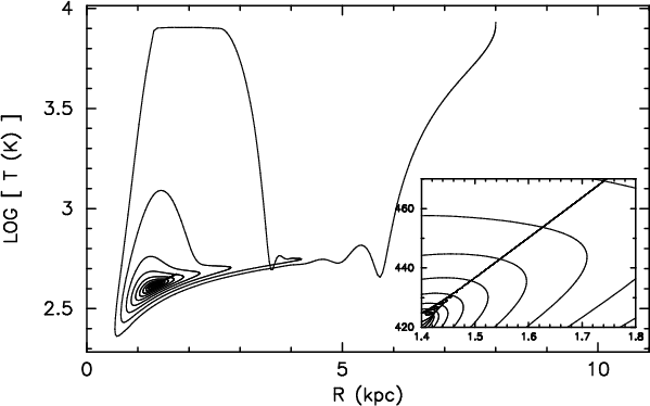 caused by the steep rise in the cooling function beyond 104 K (cf. e.g. Fig. 1 in Böhringer & Hensler 1989). For typical gas densities, unrealistically high heating rates are required to reach (and keep) temperatures beyond 104 K.