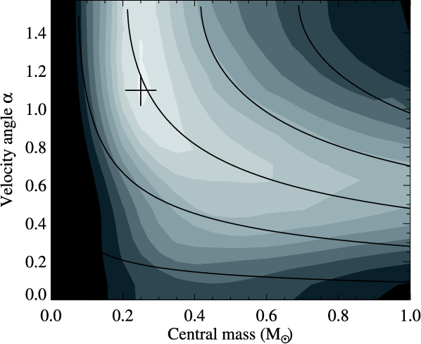 It should be noted that the implicit assumption for the velocity field in this work is that material is free falling - if it is not rotating. It is possible that the circumstellar material is not in free fall, either because free fall velocity has not yet been reached or because material is being supported magnetically or otherwise. If this is the case, the mass parameter underestimates the true mass of the star by up to a factor of four, depending on how far the system is from free fall (Brinch et al. 2008).