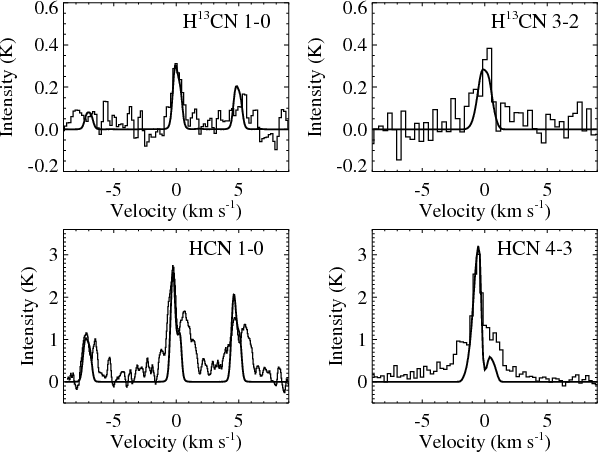 Figure 5: Best model fit to the four single-dish transitions of HCN and H13CN. |