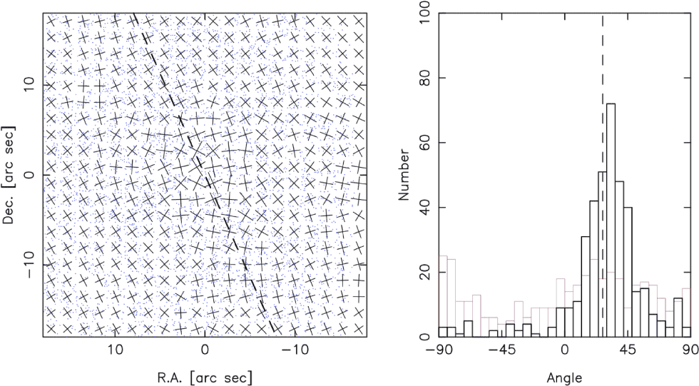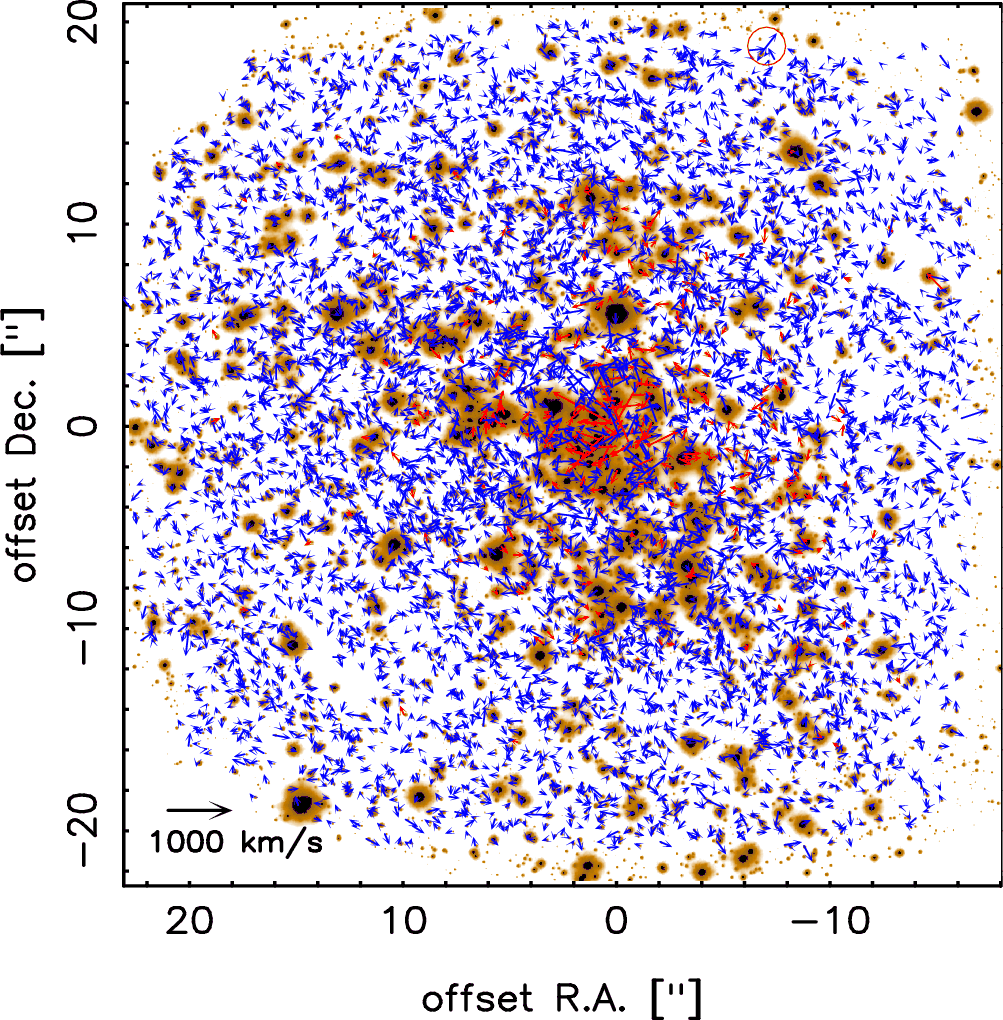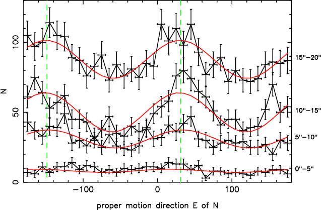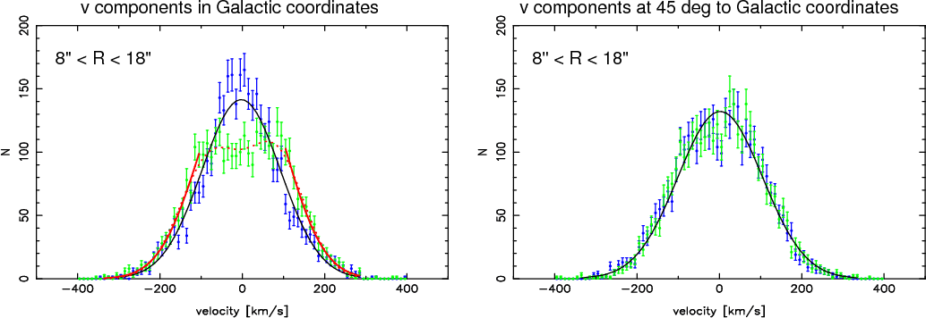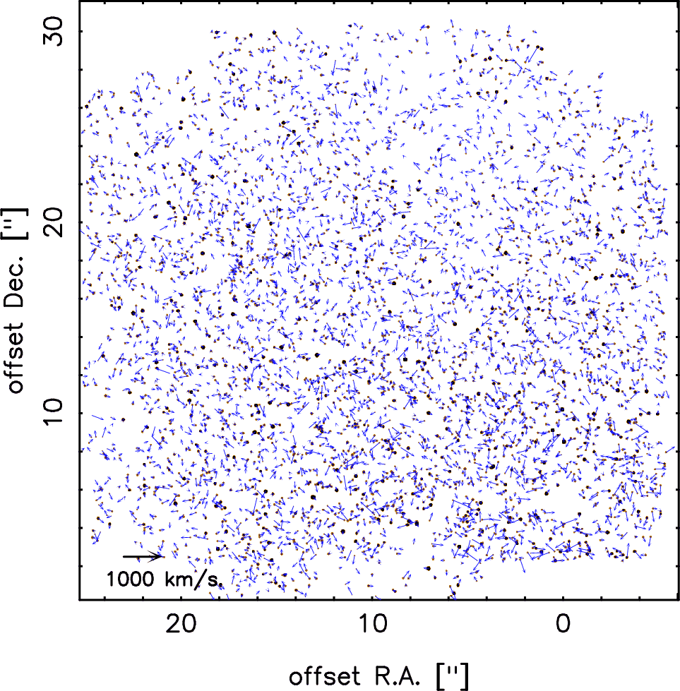 Figure B.2 shows an image of the offset field with measured stellar velocities indicated by arrows, after rejecting the stars with the 5% highest reduced -values in order to avoid outliers due to the small number of measured positions and thus rather