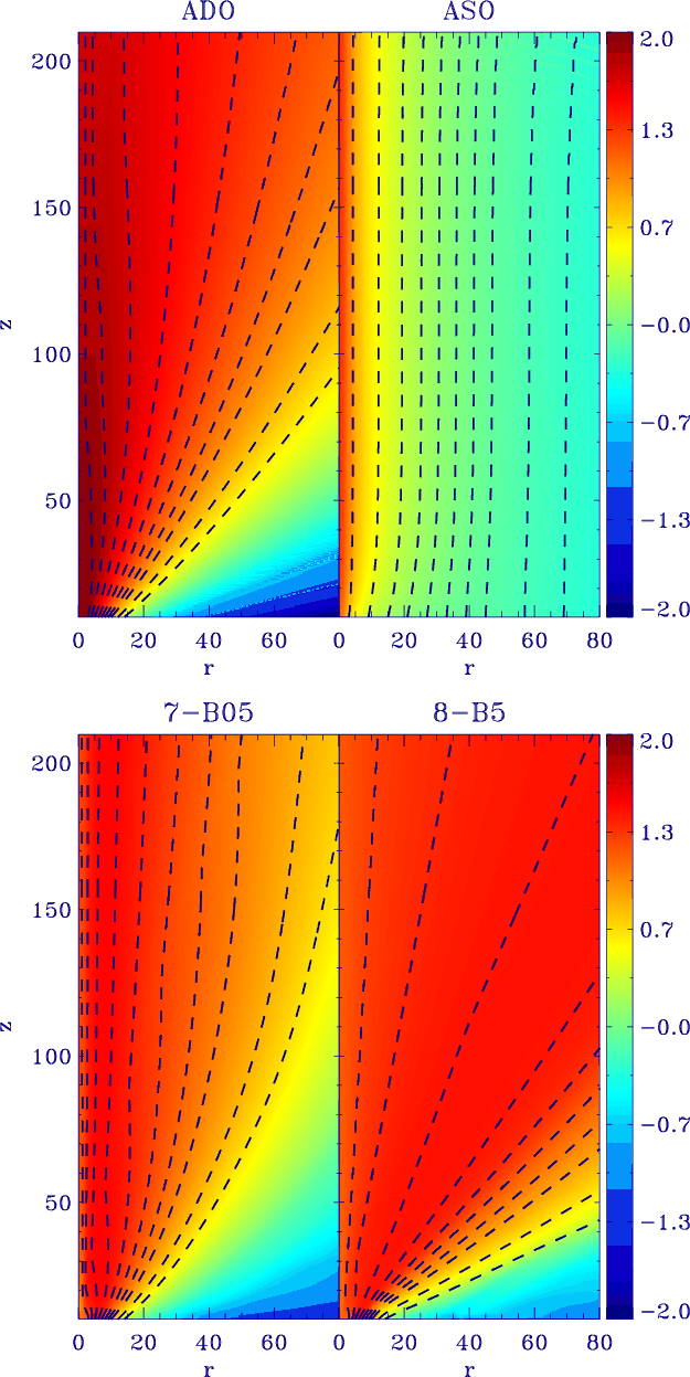 For the ADO solution (radially self-similar), the physical variables are