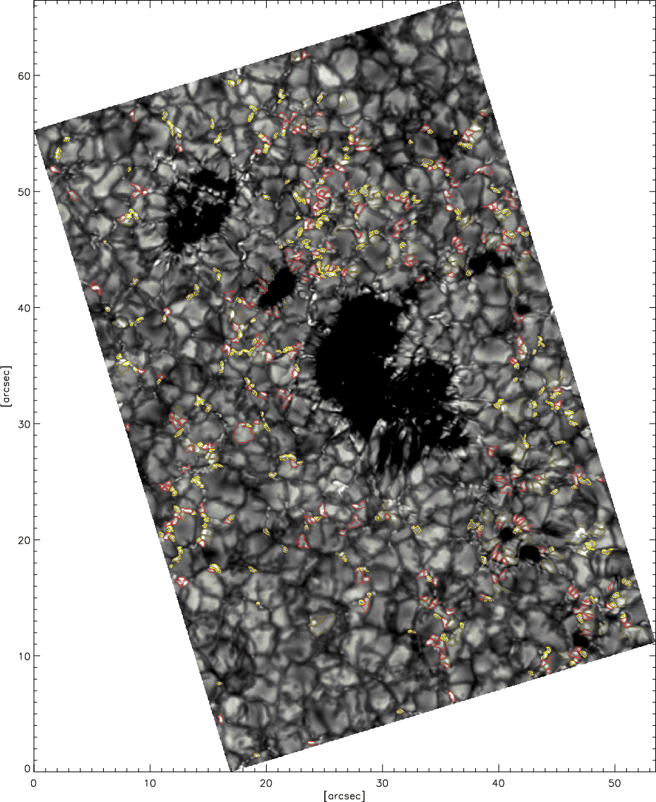 A binary map of segmented features was ultimately obtained for each G-band/continuum image pair.