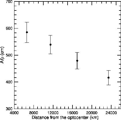 at the observation ranges from 3.35 to 19.4 AU (with the