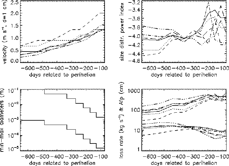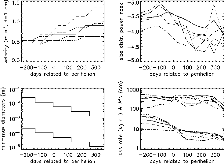 dust-loss rate and size distribution of particles (Fulle et al. 1998). The main results in