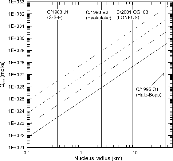 (as for the only three distant cometary objects for which the CO outgassing has been measured), a comet radius