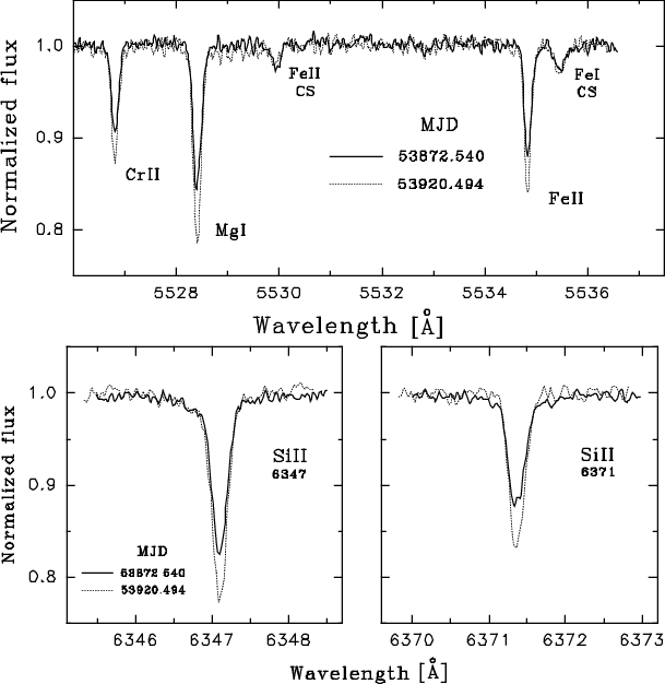 redshifted feature are observed in both H&K lines of the Ca II doublet.