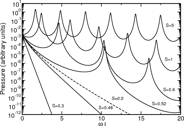 defines the pressure at t=0 and the width of the maxima, but neither the amplitude of the maxima nor the decreasing rate.