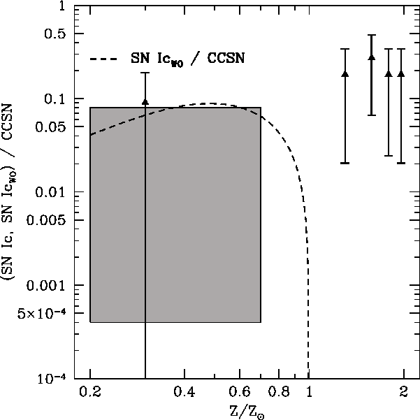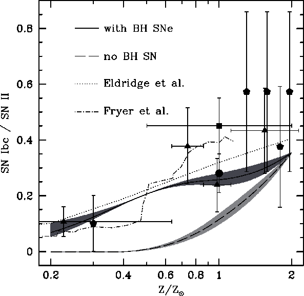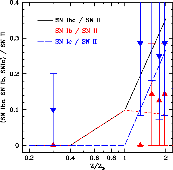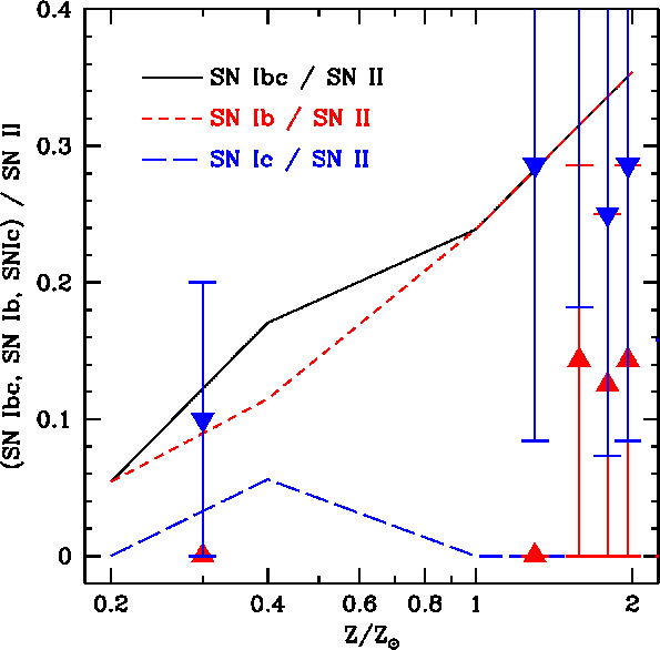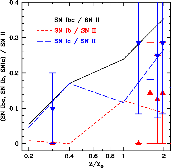 - the variations with metallicity in the number ratio of type Ibc to type II supernovae;