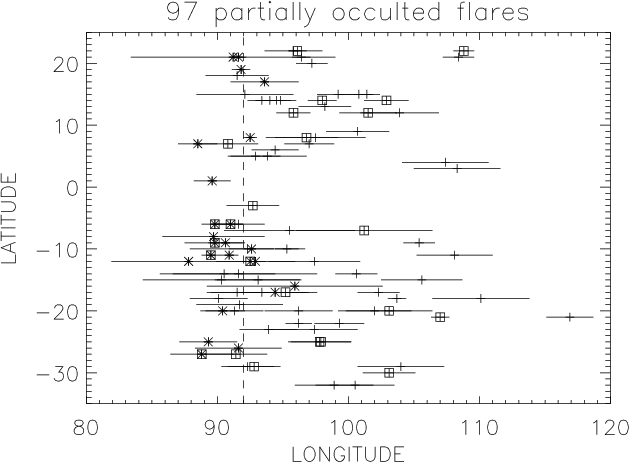 To avoid this complication, partially occulted flares have been studied. From the Yohkoh database, one or a few examples of behind-the-limb flares have previously been selected many times. This specific configuration was usually used to derive joint diagnostics from hard and soft X-ray images by including full-Sun soft X-ray spectra recorded by the Bragg Crystal Spectrometer. In this way, soft X-ray bright loop-top kernels (Khan et al. 1995; Mariska & Doschek 1997; Mariska et al. 1996; Ohyama & Shibata 1997; Sterling et al. 1996) as well as flare-associated X-ray plasma ejections (Tomczak 2004,2005; Ohyama & Shibata 1997) were investigated.