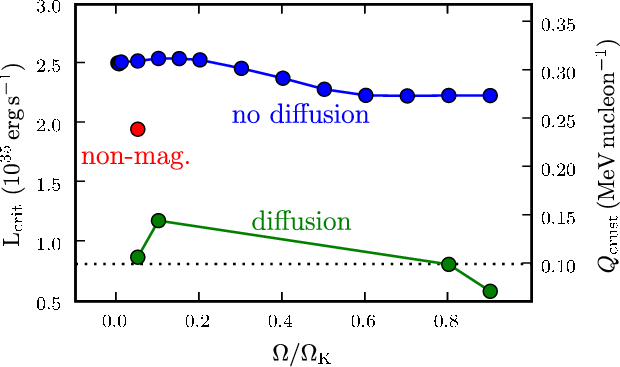 dynamo yields the strongest effect. However, even without magnetic fields, hydrodynamic instabilities and the centrifugal force increase