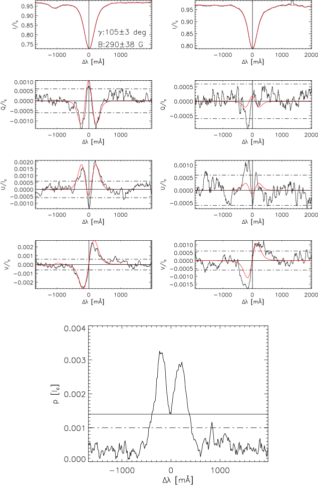 regardless of the exact calculation of the wavelength integrated quantities, is not reliable for a solid estimate, mainly because the strong influence of the thermodynamical state of the atmosphere on the weak polarization signals.