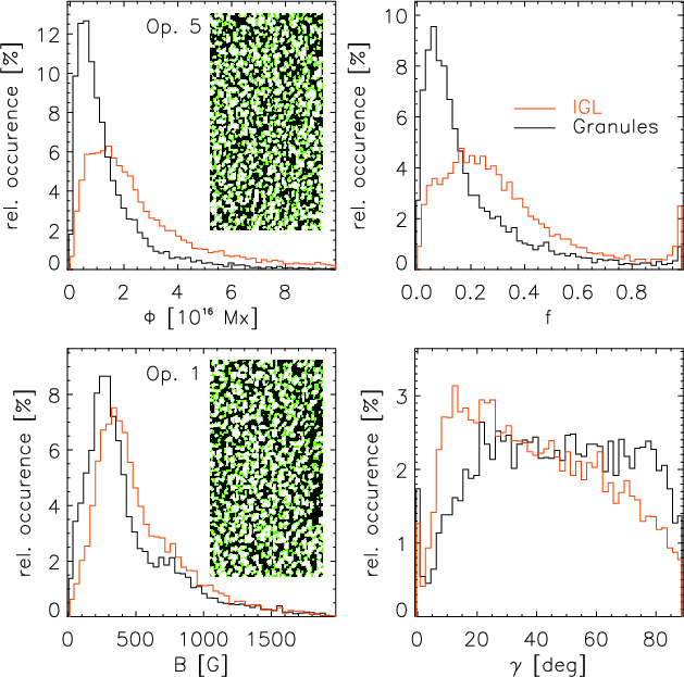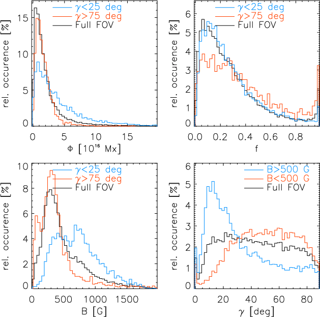 agree especially about the intrinsic field strength: the VIS observations indicated a significant fraction of strong kG fields, whereas the IR was dominated by weaker hG fields.
