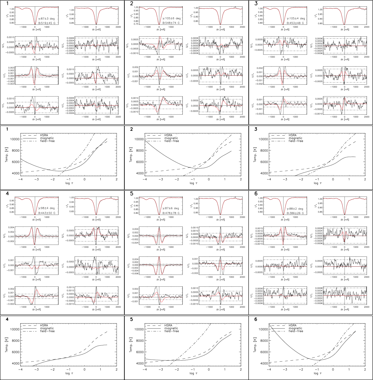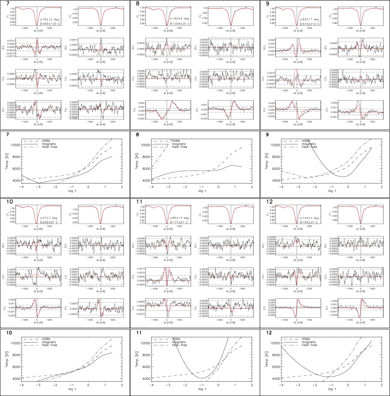 uniform spatial resolution in time and space close to the diffraction limit of the VTT at these wavelengths. We describe the observations in Sect. 2 and explain additional analysis steps and the inversion of the spectra with the SIR code in Sect. 3. The results are presented in Sect. 4 and summarized and discussed in Sect. 5. Our conclusions are given in Sect. 6.