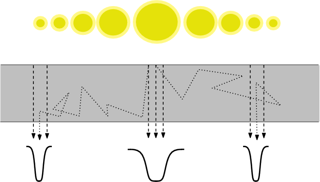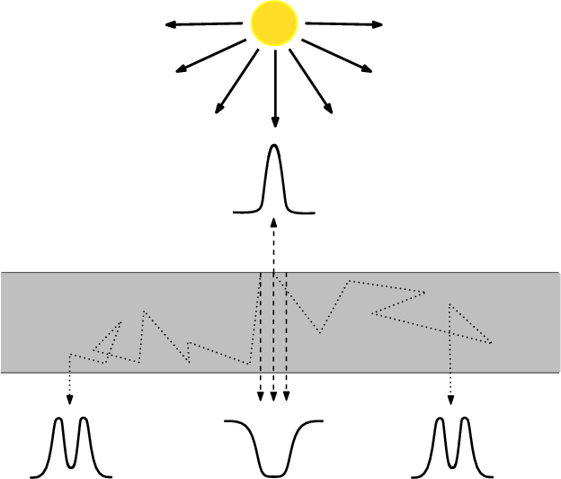 = 60 Å) into a damped absorption even with low extinction. When a slab geometry is applied and a given line of sight is chosen, the Ly