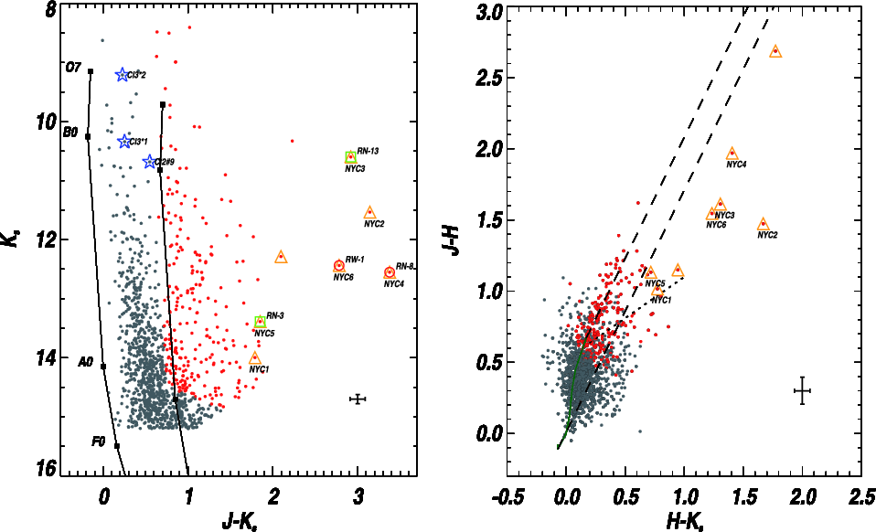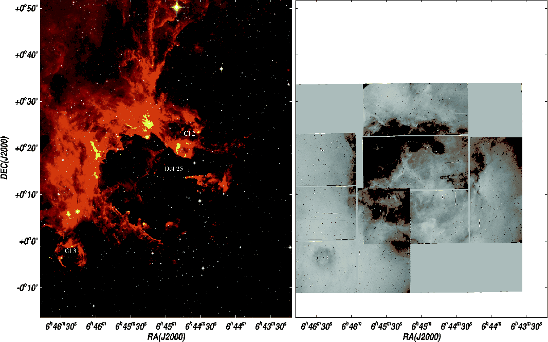 IRAC 5.8, red: IRAC 8.0). Right panel: Inverted grey scale of the H |