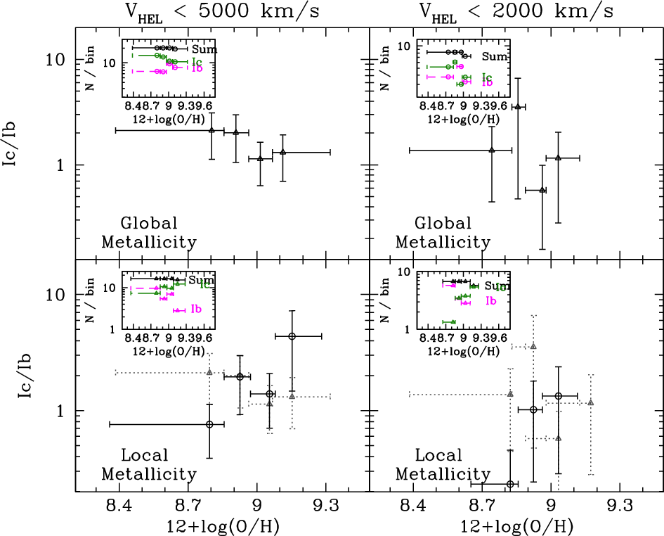 future will allow one to establish reliably the N(Ic)/N(Ib) versus metallicity