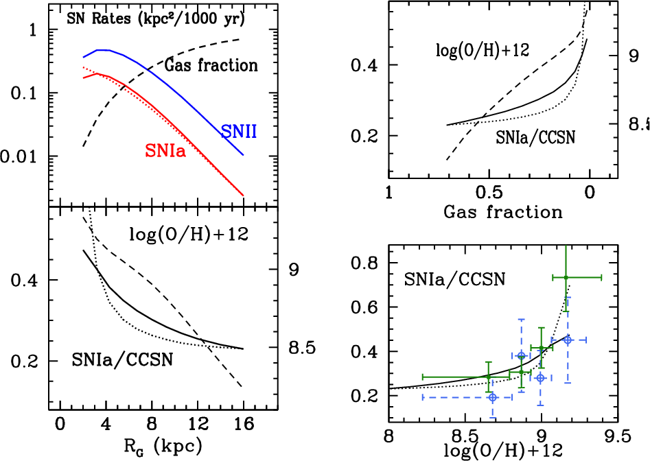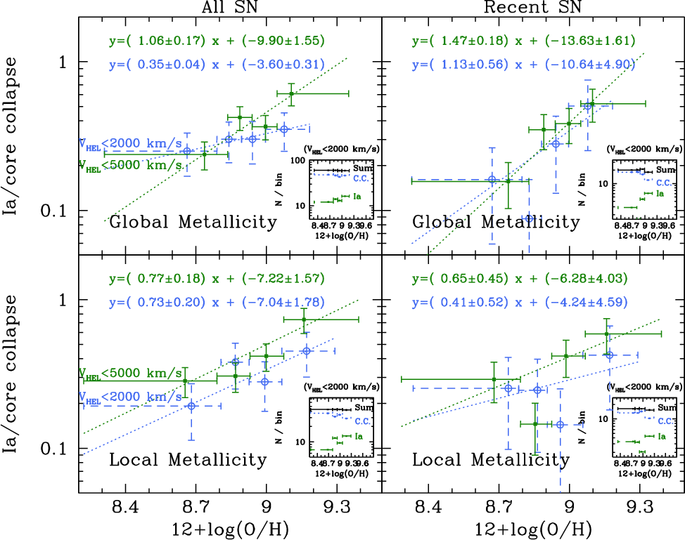 the ratio N(Ia)/N(CC) and metallicity, both globally and locally.
