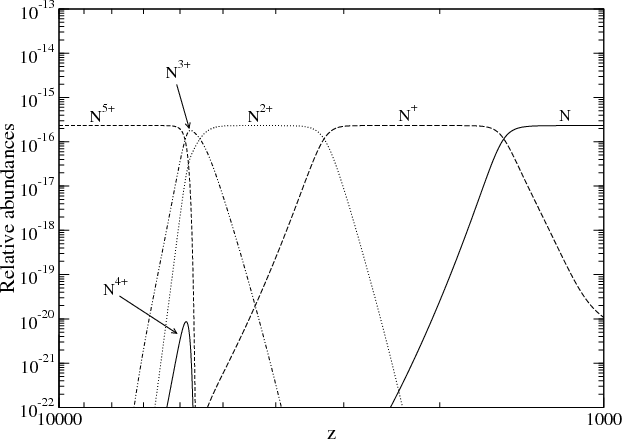 Figure 3: Successive recombinations of the nitrogen ions in the standard model. |