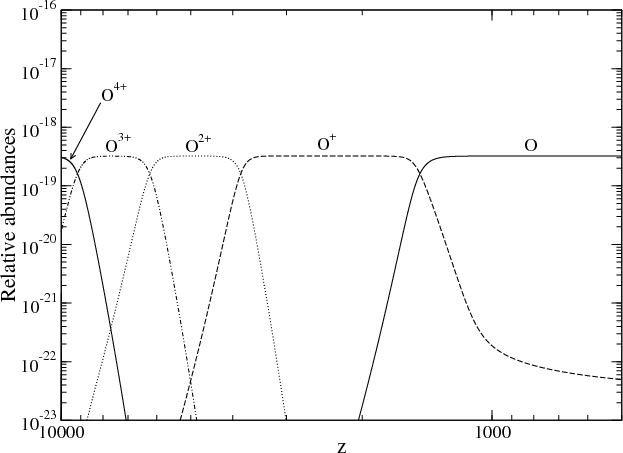 Figure 4: Successive recombinations of the oxygen ions in the standard model. |