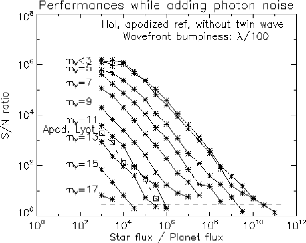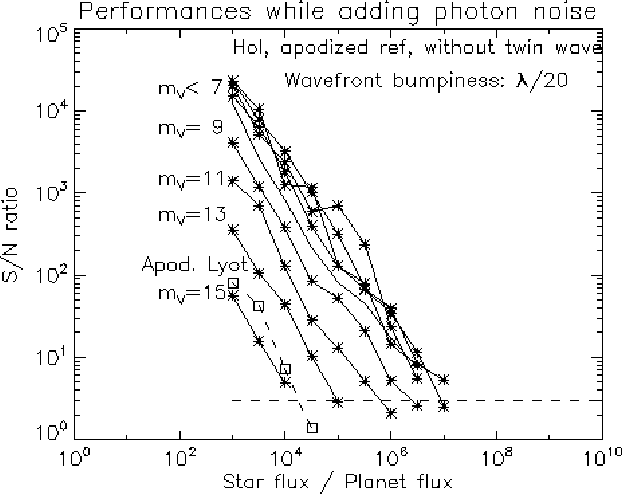 ); the hologram performance is then maximal, and independent from the star magnitude. In our simulation, those magnitudes correspond to about