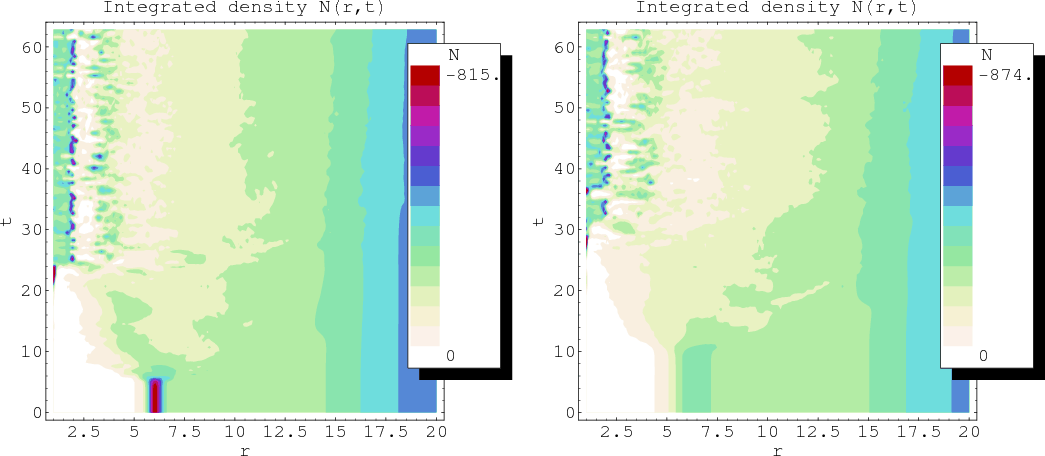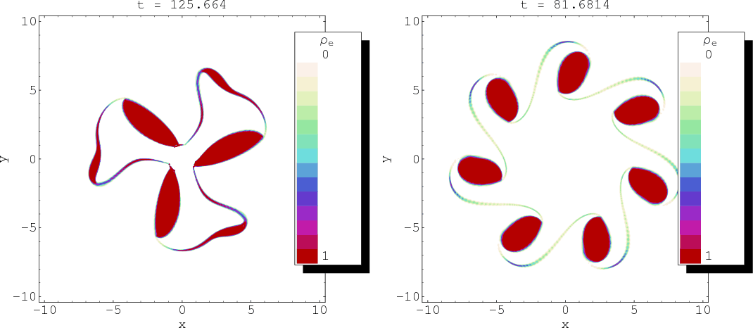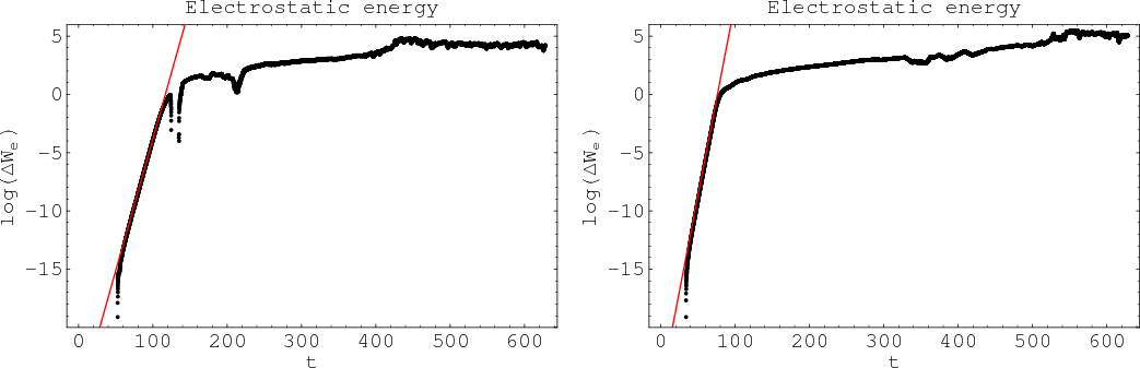 We first checked our PIC code by looking for the linear growth stage of the diocotron unstable modes. We found very good agreement between the analytical predictions from the linear analysis and the growth rates derived from our PIC code.