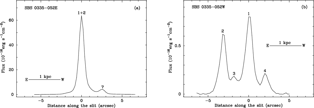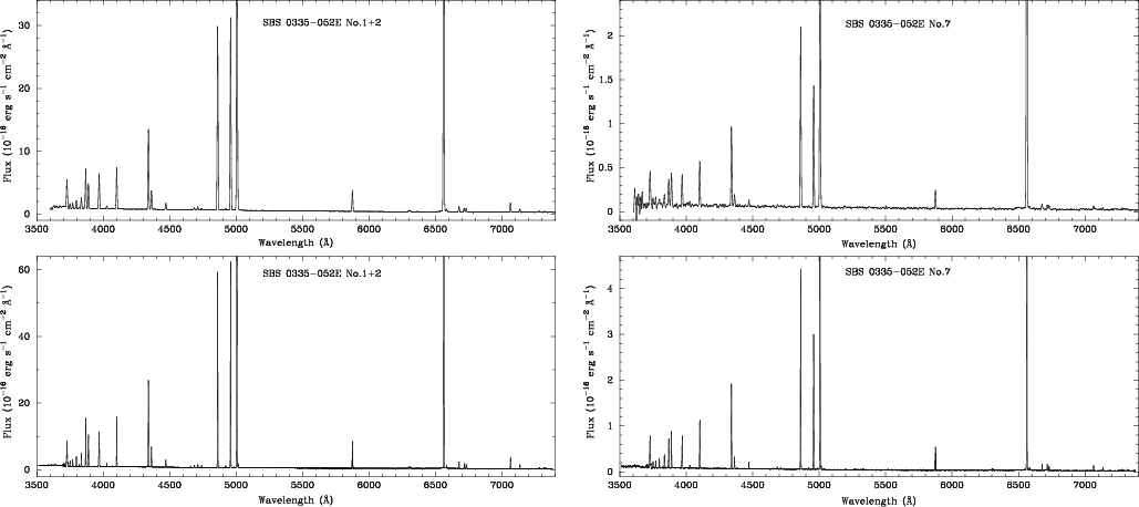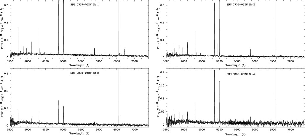 51 was centered on regions Nos. 1 and 2 in SBS 0335-052E and oriented in a direction with position angle of -91