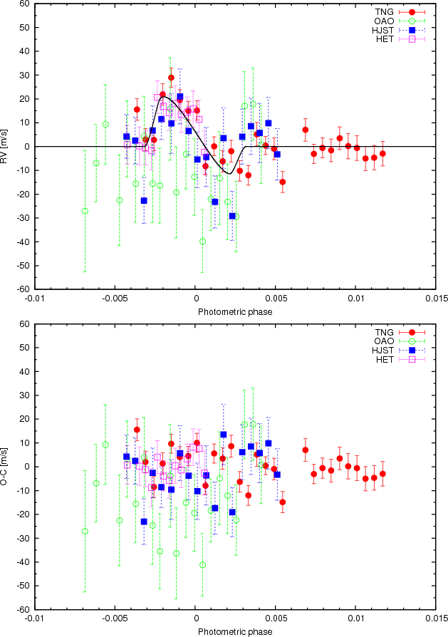 This work was partially funded by PRIN 2006 ``From disk to planetary systems: understanding the origin and demographics of solar and extrasolar planetary systems'' by INAF. We thank the TNG director for time allocation in Director Discretionary Time. We thank the referre Norio Narita for his useful comments and suggestions.
