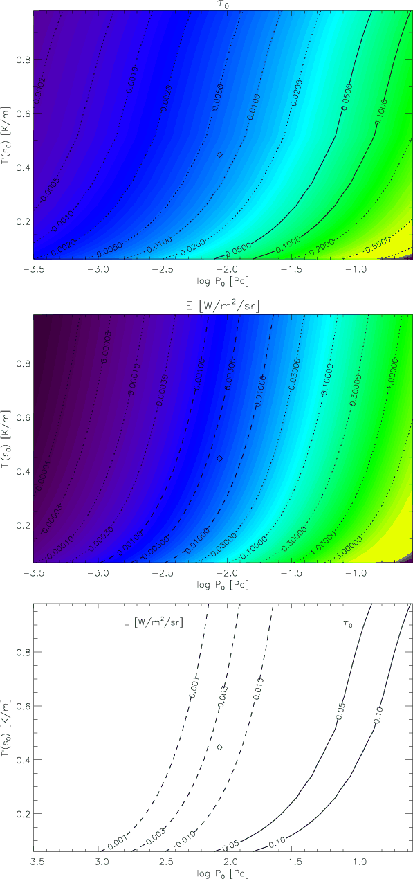 Conclusions. The pressure derived from the emission measure method compares well with previous determinations. It implies a low opacity of between 5