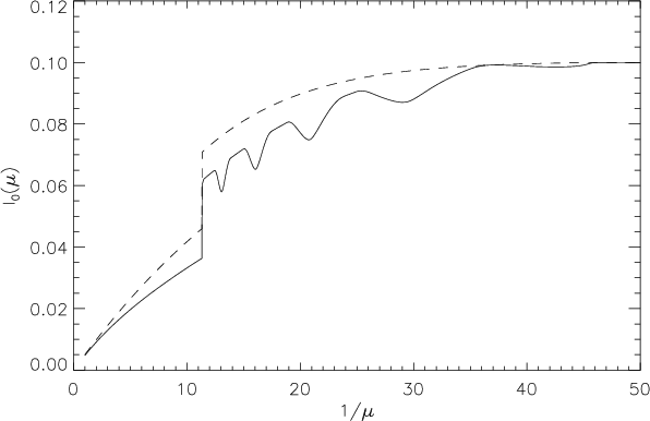 - Note that, in contrast to Dumont et al. (1983), we consider I0(1) as an additional parameter. This is because by doing so, we avoid the sensitivity of I0(1) to structures close to disk center, and because the first data bin starts at