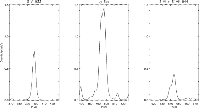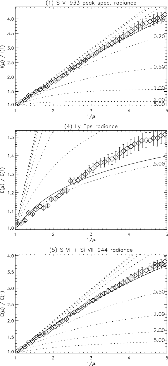 For the lines for which only the line radiance E is known (S VI 94.4 nm and Ly