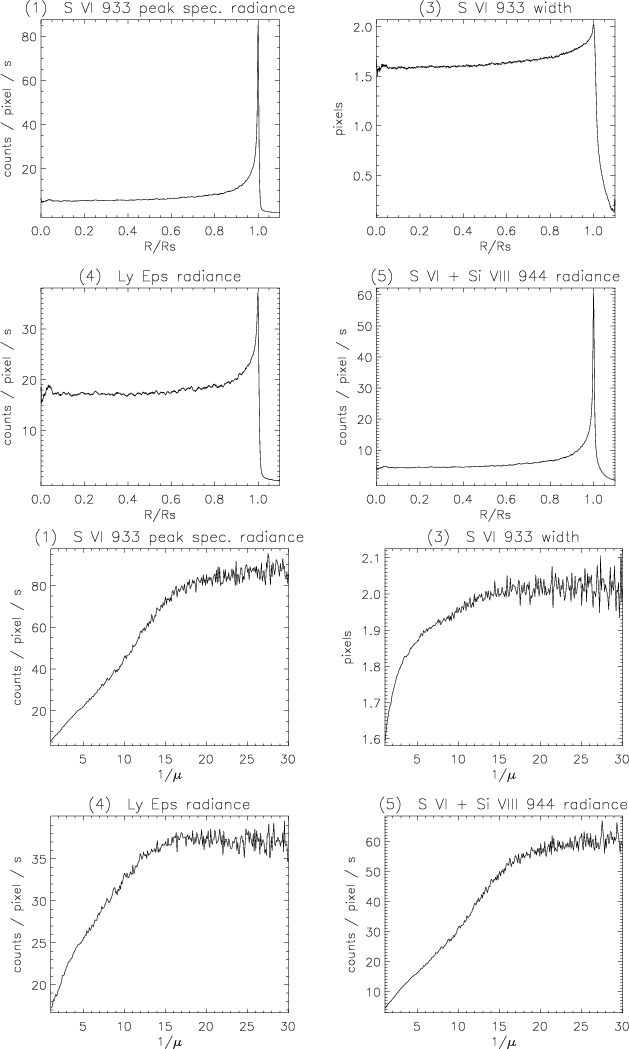 (2) Doppler shift; and (3) width of the line S VI 93.3 nm; (4) line radiance (integrated spectral radiance) of the line Ly