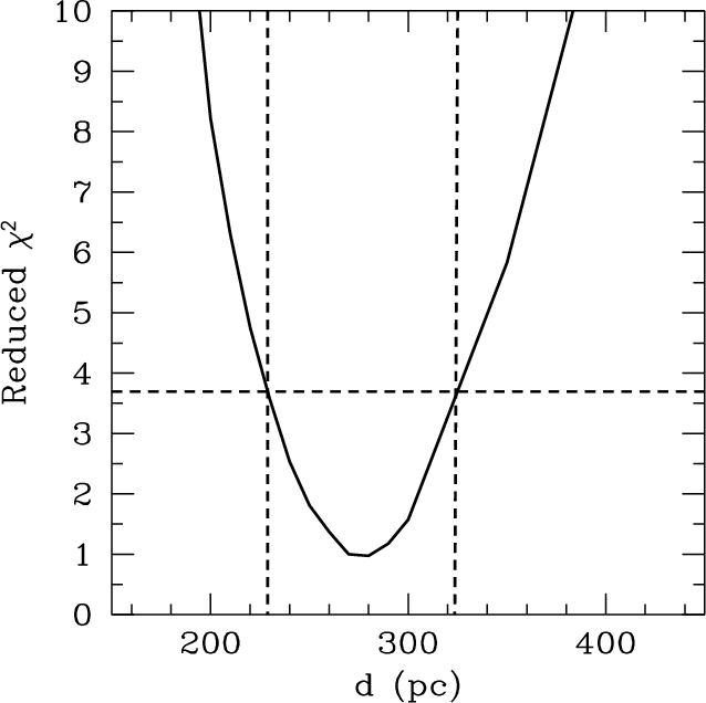 Figure 4 plots this quantity as a function of d, which has a minimum at d=280 pc