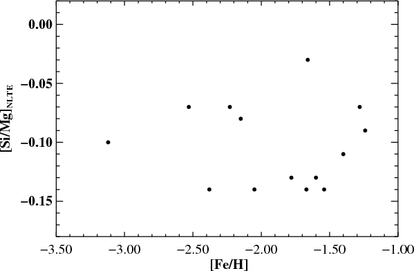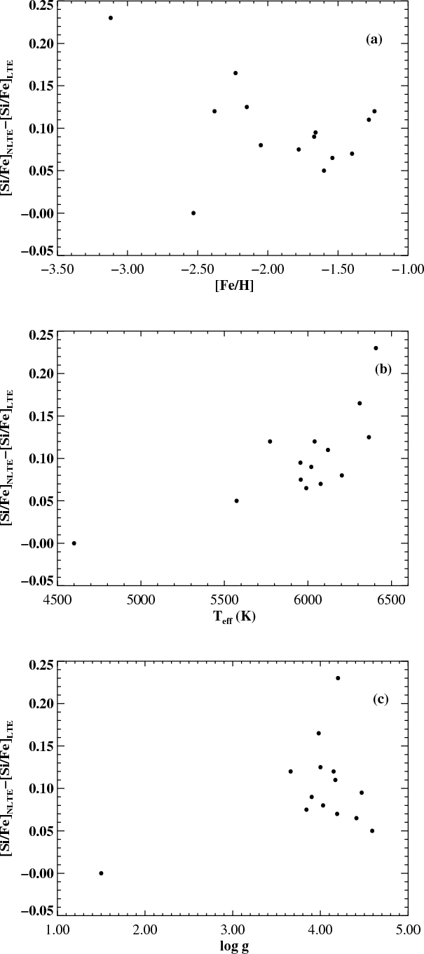- Only one non-local thermodynamic equilibrium (NLTE) analysis has been published to date, in which Wedemeyer (2001) reported the influence of deviations from LTE upon the Si abundances in the Sun and Vega, with no reference to line formation in metal-poor stars; he demonstrated that NLTE for Si in the Sun is negligibly small. However, he did not consider line formation for the two strong lines.