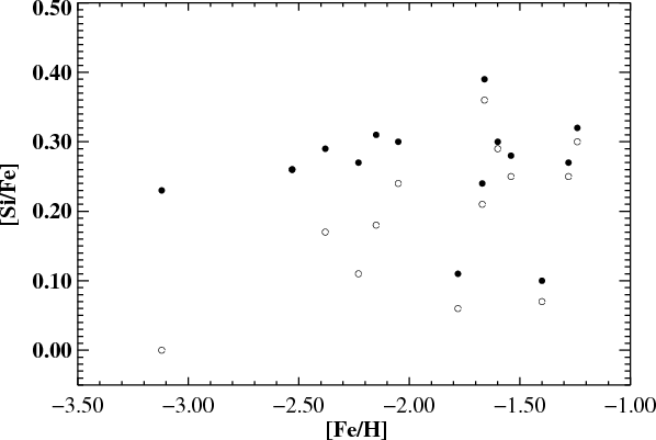 Silicon abundances of metal-poor stars determined from LTE analyses of Fulbright (2000, Filled circles |
