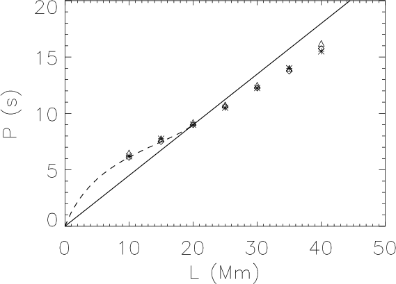 at a fixed length L. The length of the loop was set at L=15 Mm - corresponding to trapped modes - and the value of