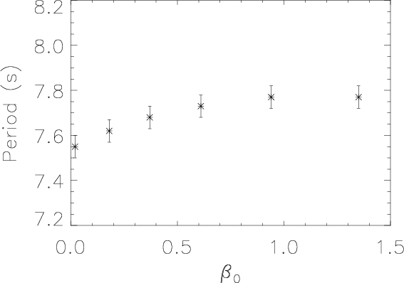 the variation is very small (less than 5%) compared to the effect of other parameters such as loop length. Thus we may say that the period of the sausage mode is very stable with respect to the value of