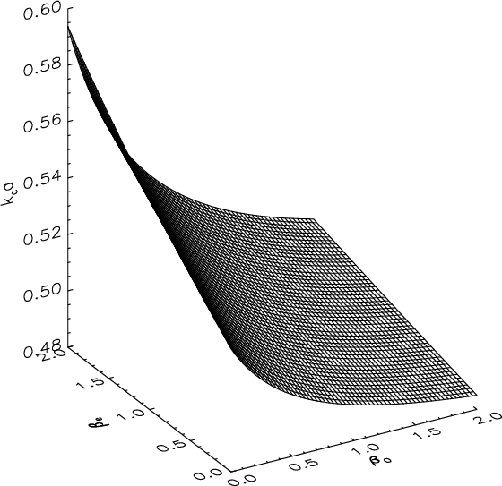 is increased from zero to one. Figure 8 shows the same result for a number of different density contrast ratios, illustrating that the density has a strong impact on the confinement of the sausage mode. Again though for any starting - and fixed - value of the density contrast, the cut-off wavenumber will decrease as a function of